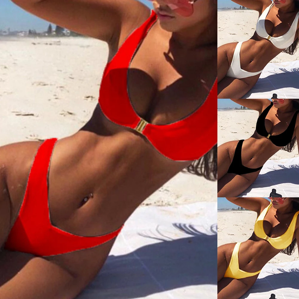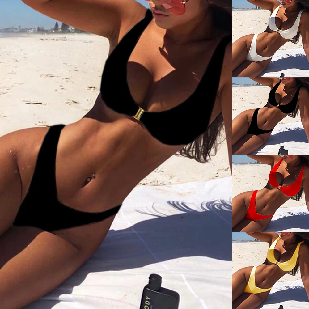 1set Women Thong Bra Bikini Swimwear Bandeau Low Waist G-String Beach Bra Top Underwear Lingerie Set Sexy Solid Swimsuit