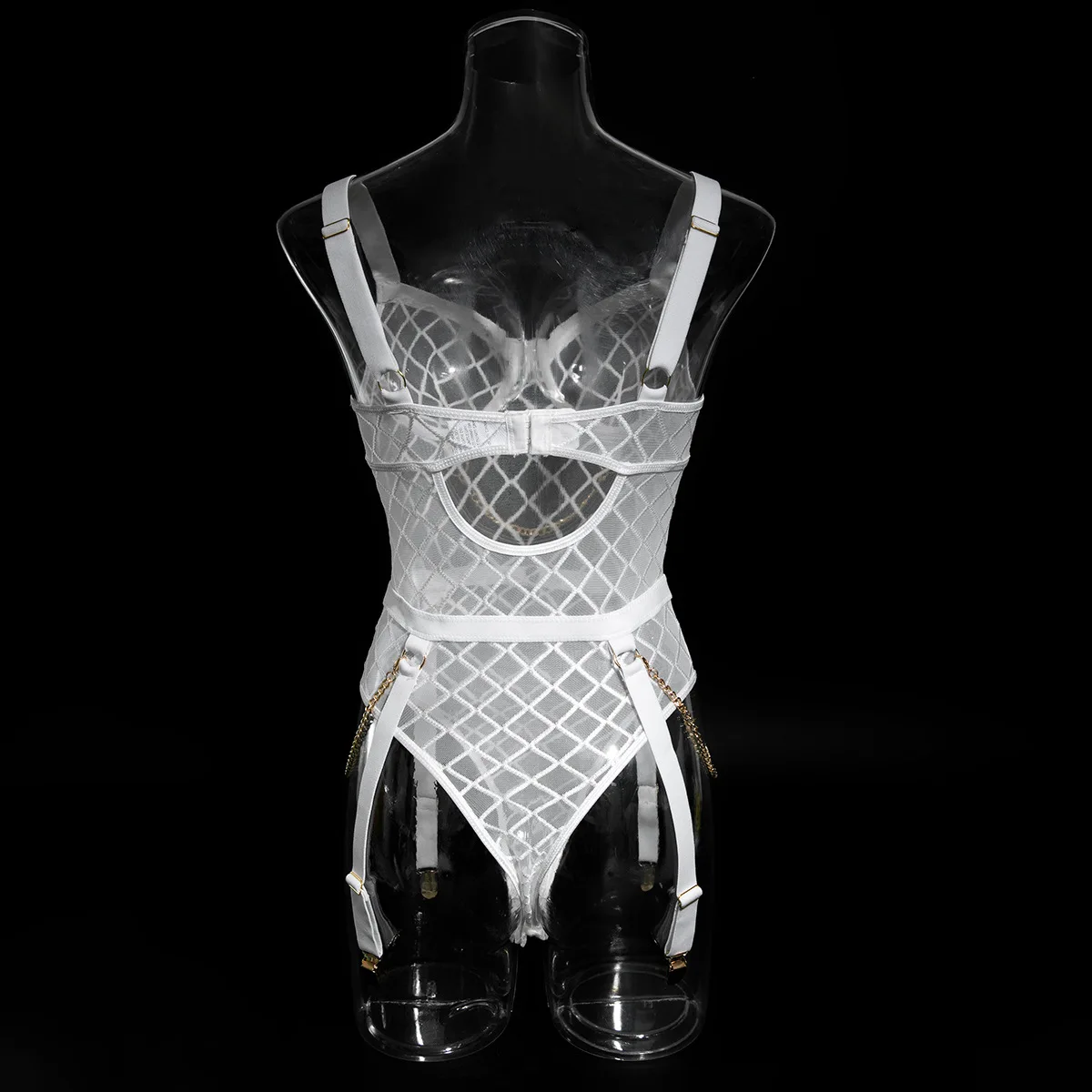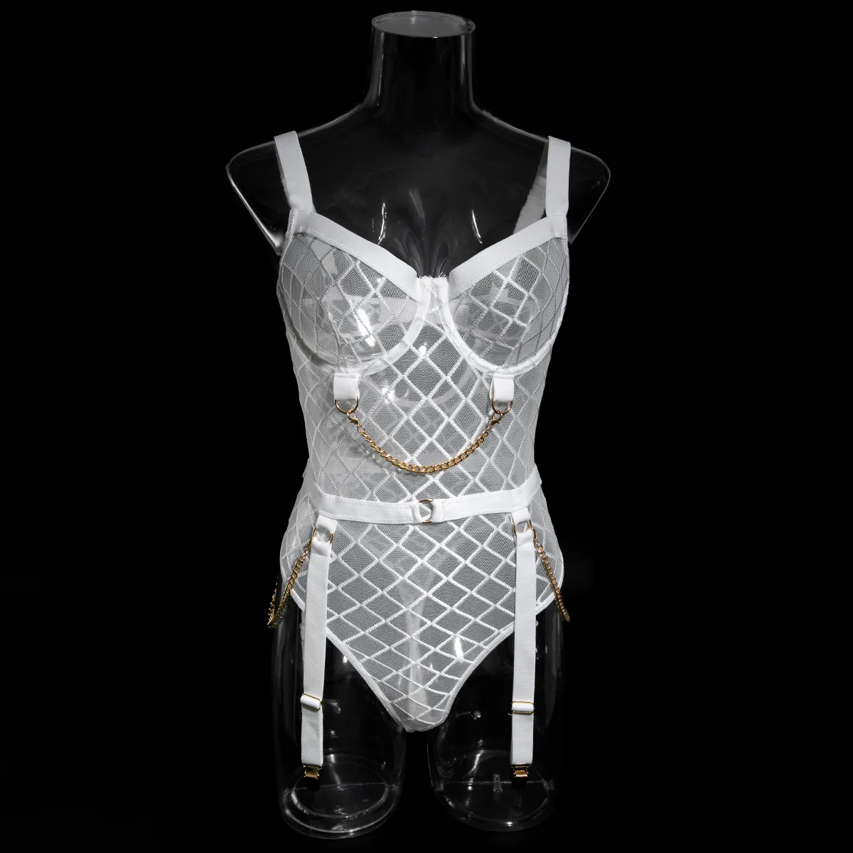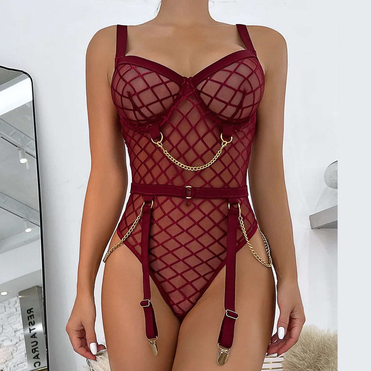 Bikini Sexy Lingerie Large Mesh Metal Steel Ring Gather Comfortably Slim Fit Jumpsuit for Women