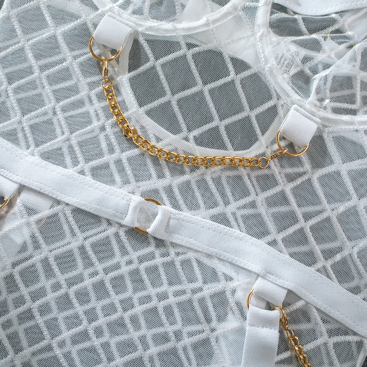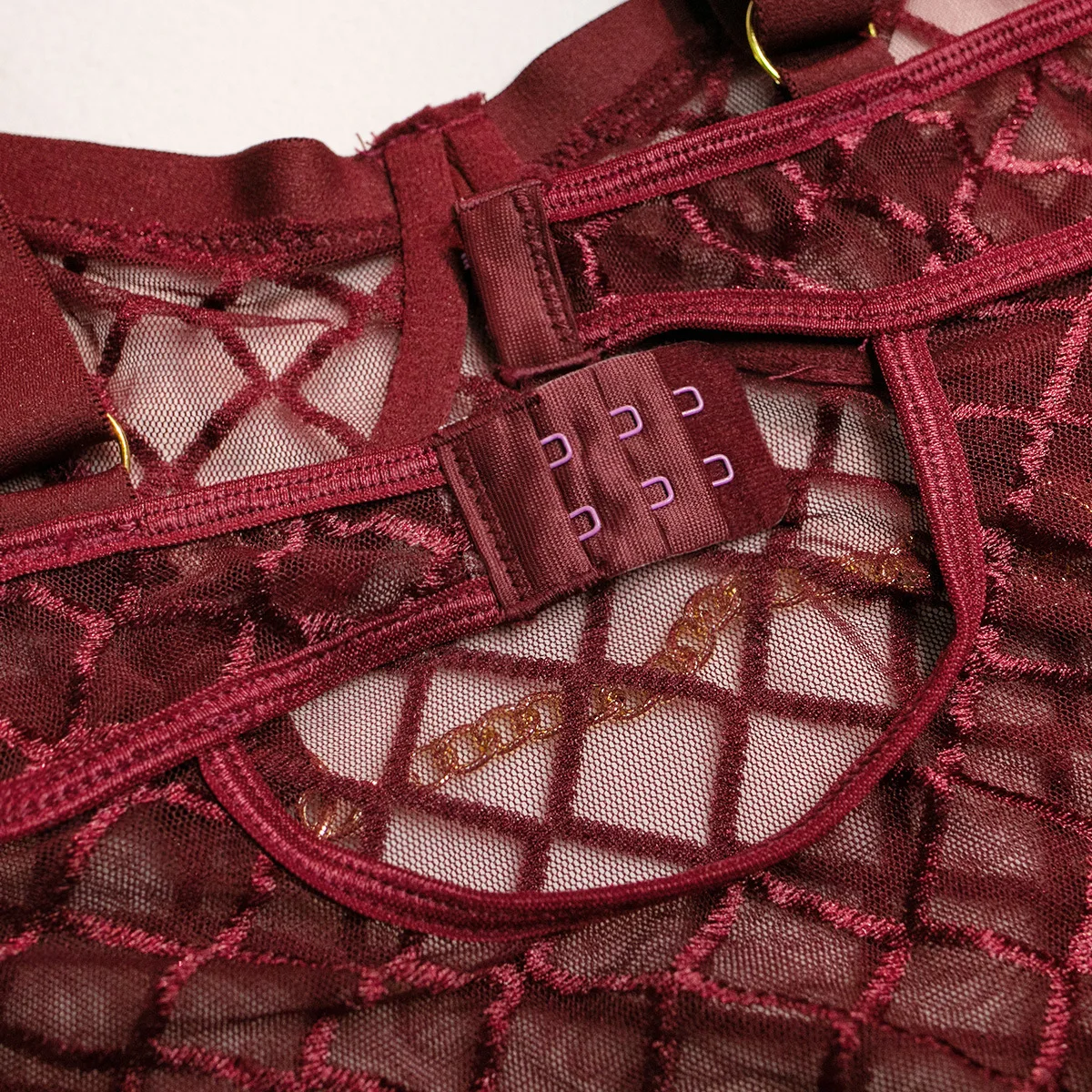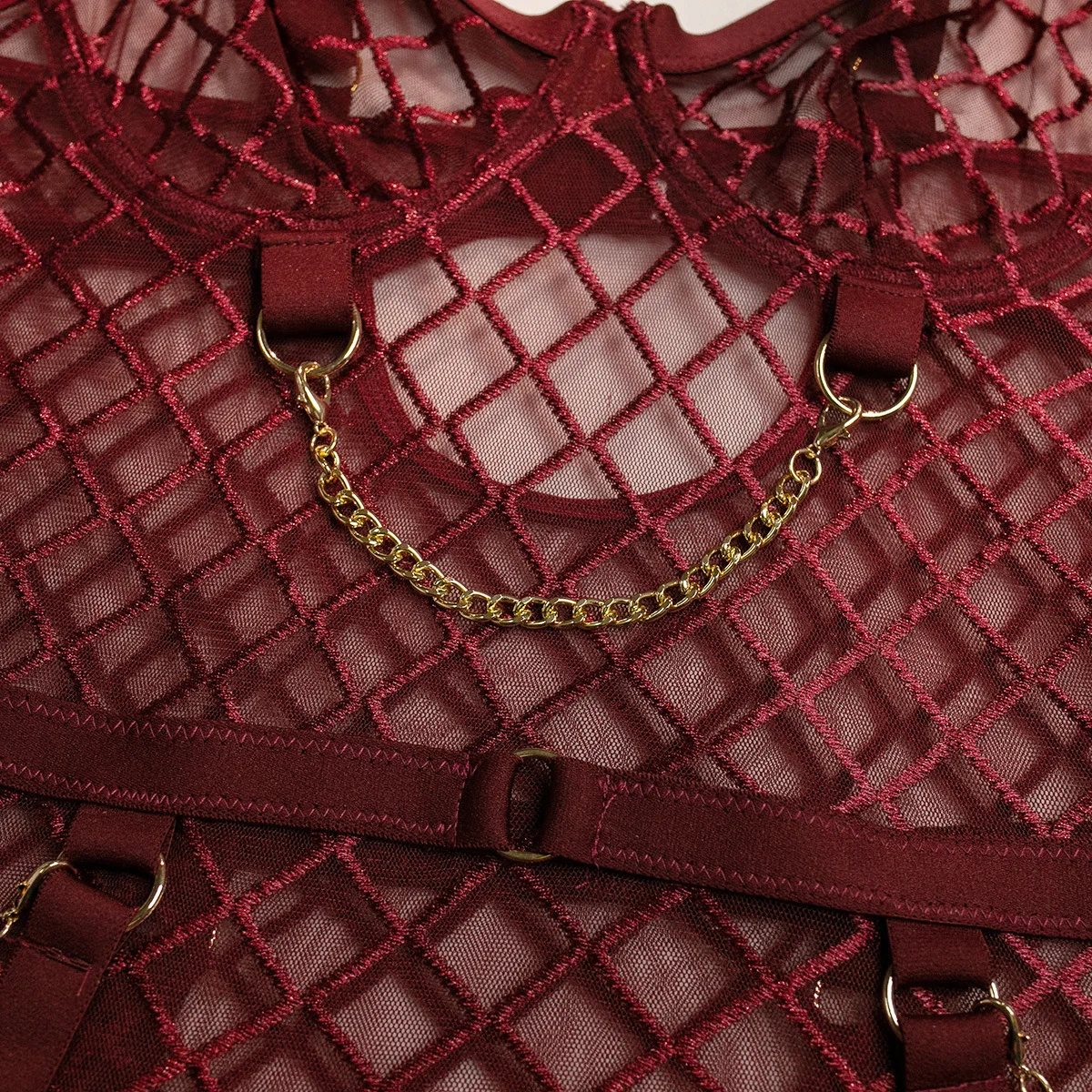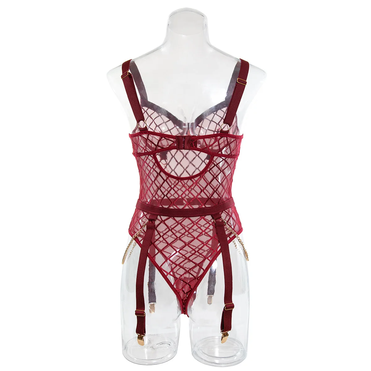 Bikini Sexy Lingerie Large Mesh Metal Steel Ring Gather Comfortably Slim Fit Jumpsuit for Women